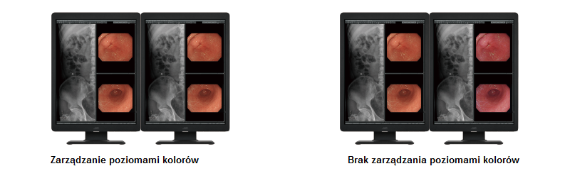 Automatyczne rozróżnianie obrazów kolorowych od monochromatycznych i wyświetlanie ich z optymalnym kontrastem, jasnością i krzywą odwzorowania obrazu. Funkcja ta nie wymaga od użytkownika żadnych wstępnych ustawień.