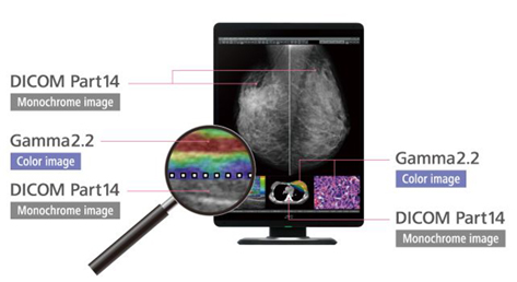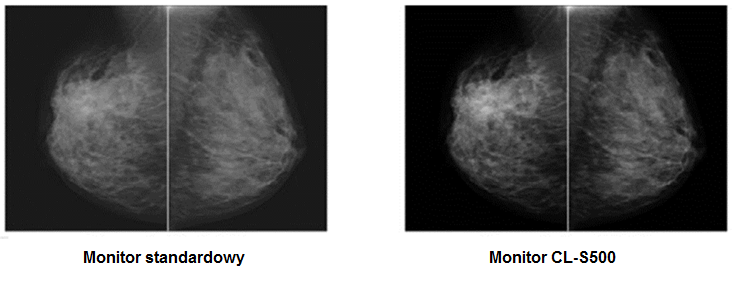 Monitor CL-S500 może wyświetlać obrazy z dowolnych modalności: mammografii cyfrowej/tomosyntezy, RTG, CT, MR, USG i patologii.