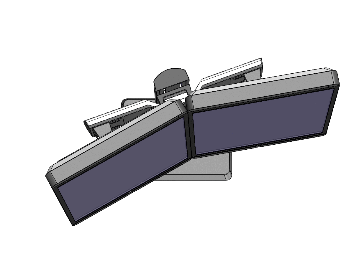 Optymalne wyświetlenie obrazów medycznych wymaga zastosowania dwóch monitorów. Dzięki umieszczeniu obu tych monitorów na jednym podwójnym statywie można jednocześnie regulować wysokość oraz kąty pionowy i poziomy dla obu ekranów.