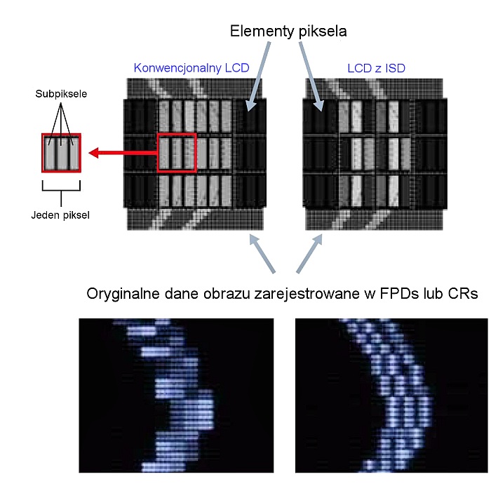 Wraz z rozwojem technologi obrazowania zwiększyły się również rozdzielczości uzyskiwanych obrazów diagnostycznych. W tej chwili nawet możliwość wyświetlenia na monitorze obrazu z rozdzielczością 5MP często okazuje się niewystarczająca. Prawdziwym przełomem w tej dziedzinie stało się wprowadzenie na rynek monitorów JVC (dawniej TOTOKU) wyposażonych w funkcję niezależnego sterowania subpikselami (technologii ISD*), pozwalającą wyświetlić obrazy z jeszcze większa rozdzielczością niż dotychczas.
