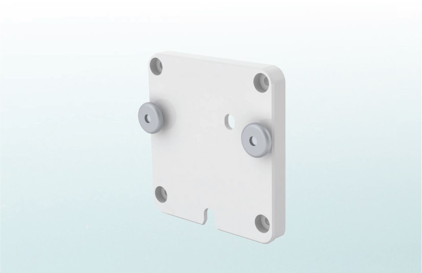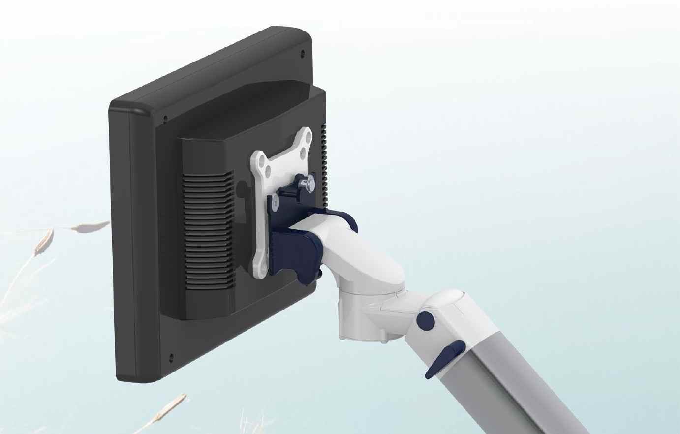 Płytkę adaptacyjną (Q lub Q1) przykręca się od tyłu instalowanego urządzenia, a następnie całość zakłada na uchwyt ramienia montażowego. Odpowiednio dopasowana zapadka gwarantuje szybkie i trwałe połączenie obu elementów.