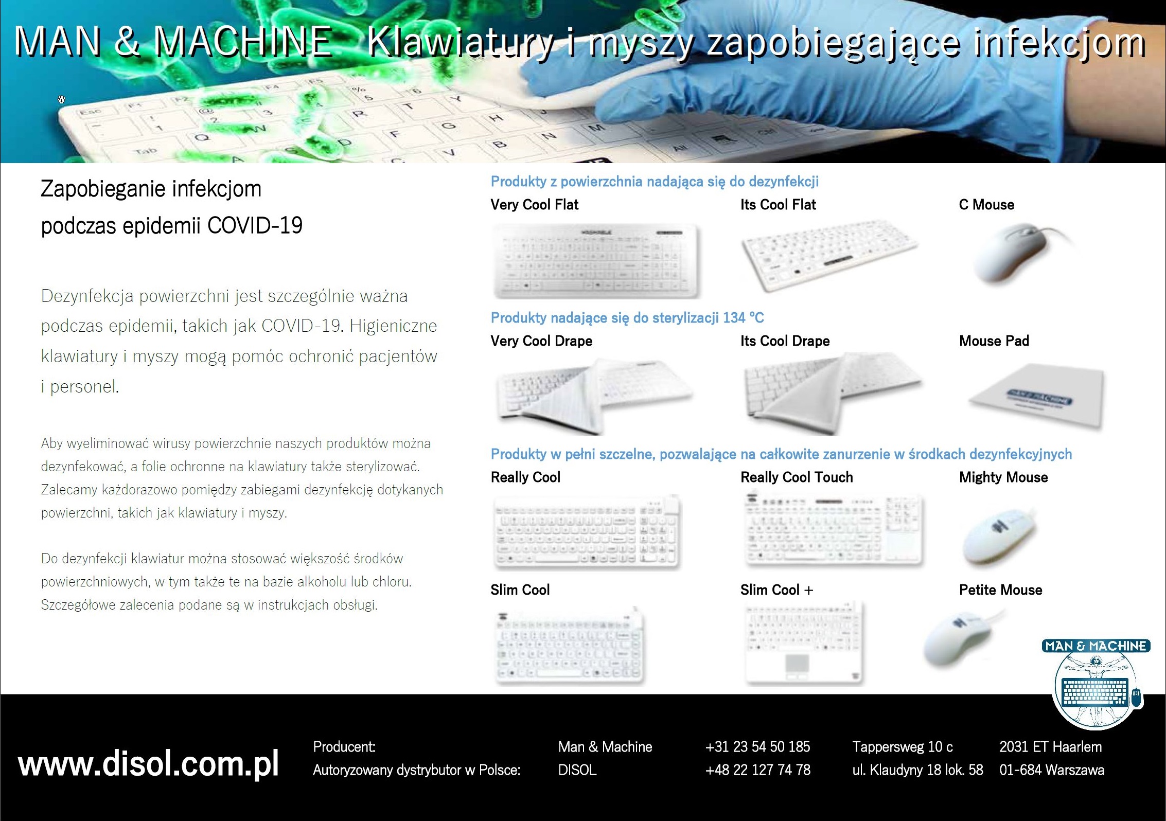 Aby wyeliminować wirusy powierzchnie naszych produktów można dezynfekować, a folie ochronne na klawiatury także sterylizować. Zalecamy każdorazowo pomiędzy zabiegami dezynfekcję dotykanych powierzchni, takich jak klawiatury i myszy.